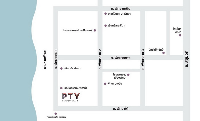 ถ.เลียบชายหาด ถ.พัทยาสายสอง ถ.พัทยาใต้ ถ.พัทยากลาง ถ.พัทยาเหนือ ถ.สุขุมวิท